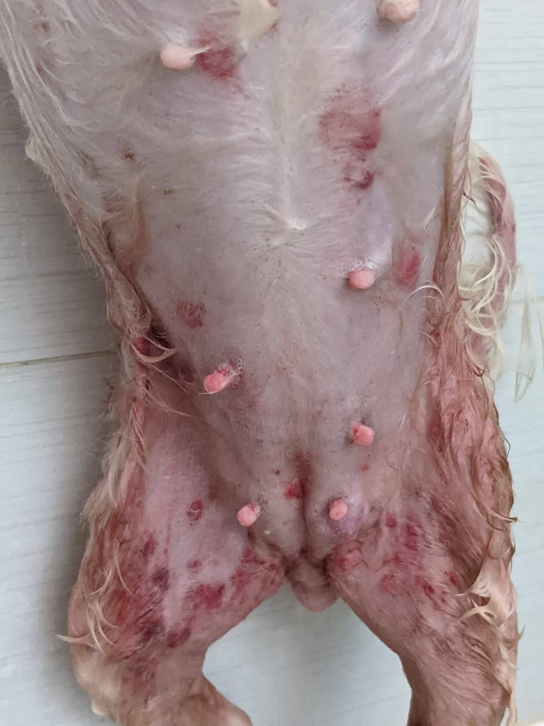 原來可憐的毛孩全身性的皮膚問題已經有一段時間了